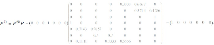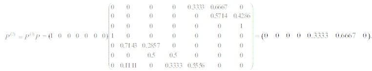 If P = {Pij} is the state probability distribution of the process at an arbitrary time, then after one step is P . P, where P is the transition probability matrix of the chain and after that n steps is (Wang & Leu, 1996), P . Pn.