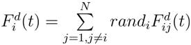 To give a stochastic characteristic to the algorithm, the total force that acts on agent i in a dimension dth be a randomly weighted sum of d components of the forces exerted from other agents: