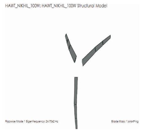 Figures 20 and 21 show the model that was prepared using the Qblade software for the purpose of simulation. After subjecting to a simulation of time step of 360, it is observed that, the power obtained is 43.5 W for a wind speed of 4 m/s and a height of 10 m from the ground for the given area in Hubli.