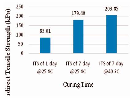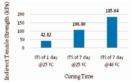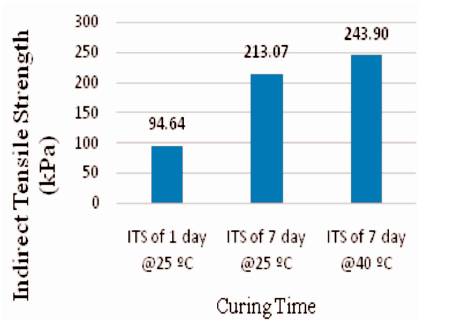 Figure 7. Relationship between Indirect Tensile Strength and different Curing Conditions for Conventional Cold Mix