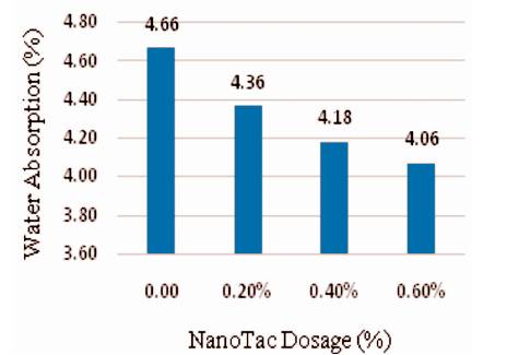 Figure 6. Comparison of Water Absorption at different NanoTac Dosages