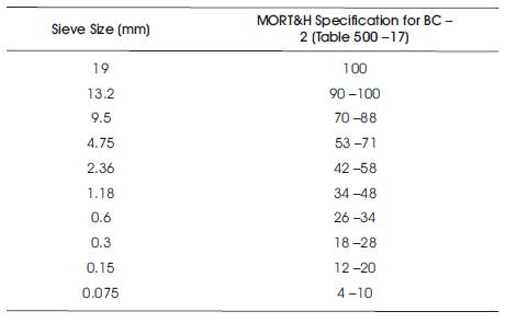 Table 1. Adopted Gradation for the Cold Mix BC–2 [8]