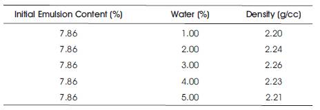 Marshall Properties of cold mixes for BC – II for following variations were determined in the laboratory and results were analyzed.