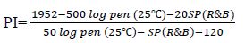 Using equation (1), the Penetration Index (PI) was determined by substitution of the test result values of penetration and softening point. The penetration Index measures the alteration of the binder's consistency with temperature. The PI value ranges from (-3) to (+7) for high and blown low temperature susceptible bitumen, respectively. Lower PI value indicates the quicker changes of bitumen viscosity as the temperature changes.