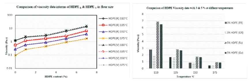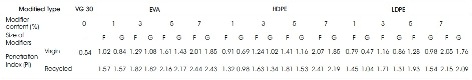 Table 3. Penetration Index Values at Various Percentage of Virgin and Recycled Polymers (EVAV&R, HDPEV&R and LDPEV&R) in Flour and Granules Size