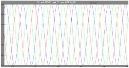 Wind generation using wind turbine, pitch control, Induction Generator. Here we are using the induction generator as generating machine due to its advantages over other machines for its simplicity and economical factors. The pitch angle controller makes the angle of the turbine blade to adjust in such a way that the speed of rotation at every velocity of the wind is maintained constant. And the parallel capacitive bank is to supply the reactive power to the IM running as the generator. Here we considered the per unit values in the closed loop that can be seen. The rms values of the current and voltage generated is taken and the power is being calculated at every sampling time interval and the wave form is being traced in the scope. A timer is used in fig for assigning the wind velocity at 3 different states which will be linearise after some loop operations (Figures 2 to 7).