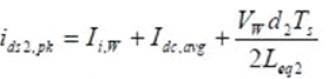The switches’ voltage and current characteristics are also provided in this section. The voltage stress is given by equations (6) and (7) respectively. As for the current stress, it is observed from Figure 6 that the peak current always occurs at the end of the on-time of the MOSFET. Both the Cuk and SEPIC MOSFET current consists of both the input current and the capacitors (C1 or C2 ) current. The peak current stress of M1 and M2 are given by equations (8) and (10) respectively. Leq1 and Leq2 , given by equations (9) and (11), represent equivalent inductance of Cuk and SEPIC converter respectively.