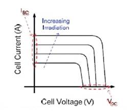 Typically, the shunt resistance (Rsh ) is very large and the series resistance (Rs ) is very small[5]. Therefore, it is common to neglect these resistances in order to simplify the solar cell model. The resultant ideal voltage-current characteristic of a photovoltaic cell is given by equation (17) and illustrated by Figure 10.[5].
