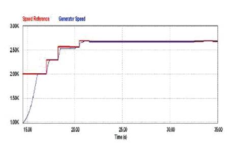 Figure 17. Wind MPPT- Generator speed and reference speed signal (SEPIC operation)
