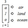 This expression is read and pronounced as follows, “The ambitation of the earth (e) to the sun (s) to the moon (m) from an index (i) that equals 1 and is inclusive of all 3 values”. As a result of the “Earth” value threefold within sub–trichotomous states that are formulated as: “air” as value (a); “land” as value (l); and “ocean” as value (o), an ambitation of the values is presented as,