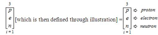 This expression is read and pronounced as follows, “The ambitation of the Trimagnetic Sub-Trichotomous Charge State of natural phenomena in the form = “Air” as value (a) to the Trimagnetic Sub-Trichotomous Charge State of natural phenomena in the form = “Water” as value (w) to the Trimagnetic Sub-Trichotomous Charge State of natural phenomena in the form = “Plasma” as value (p) from an index (i) that equals 1 and is inclusive of all 3 values”.