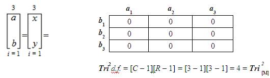 Note: The expression for (equation 2) is literally stated as, “The ambit of a as determined by b with an index of 1 and a neuromand of 3 is equal to the ambit of x as determined by y with and index of 1 and a neuromand of 3 which in turn is also equal to the Standard Tri–Squared Test 3 × 3 Table”.