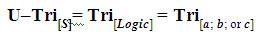 The variables “a, b, and c” in trioinformatic trichotomous logic are enclosed within the enlarged brackets “[]” (though different in their respective positions, the three are all holistically a part of the same idea or concept; regarding the “Universal Trichotomous Statement” (the Cohesive Rational Statement) or “U-Tri[s]” which can also be expressed as, “Tri[a; b; or c] ”) (Osler, 2015). Thus, the brackets indicate that the variables (a, b, and c) are uniformly and directly related through a singular given statement, inquiry, and/or term for the specific purposes of determining an individual outcome (that is trichotomously “a; b; or c”). The logical mathematical notation for the decision–making process regarding the Universal Trichotomous Cohesive Rational Statement is of the following novel form.