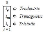 This expression is read and pronounced as follows, “The ambitation of the Trielectric Sub-Trichotomous Charge State of natural phenomena (te) to the Trimagnetic Sub- Trichotomous Charge State of natural phenomena (tm) to the Tristatic Sub-Trichotomous Charge State of natural phenomena (ts) from an index (i) that equals 1 and is s inclusive of all 3 values”. The properties of the trifold “Series of Sub-TCS forms of natural phenomena” are “Active”; “Reactive”; “Compact” and are further “Sub-Ambitized” as follows,