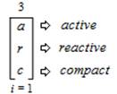 This expression is read and pronounced as follows, “The ambitation of active (a) to reactive (r) to the compact (c) from an index (i) that equals 1 and is inclusive of all 3 values”.