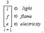 Trielectric are an “Active” (“Dynamic” and “Causational”) TCS and consist of a natural series of Trichotomous Charge States that can take any of the following Trichotomous forms: “Light” (i.e., the state of “radiance”, which has its own threefold within sub–trichotomous states that are: “photon”; “wave” and “radiation”) as ambit value (l);“Flame” (i.e., the state of “oxidation”) as ambit value (f); and “Electricity” (which has its own threefold within sub–trichotomous states that are: “arc”; “ball”; and “static”) as ambit value (e). As ambit values, these natural phenomena forms can then be ambitized in the following expression,