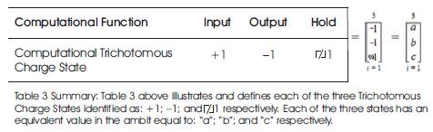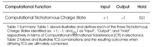 Table 1. Computational Trioinformatic Table of Computational Trichotomous Charge States in Terms of Computational Information Transference [CIT]