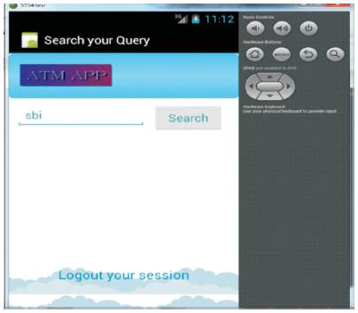 After login, query page will be displayed, which allows user to specify the keyword, which can be searched and display the information about the ATM. Searching query is shown in Figure 4.