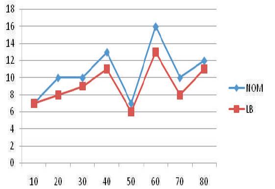 Figure 2. Number of Machines (NOM) Required and Lower Bounds (LB) for Test Data