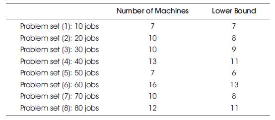 Table 1. Number of Machines Required and Lower Bounds for Test Problems