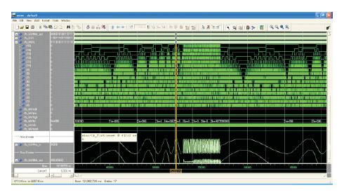 Figure 4 shows the simulation tool used for processing the input, both analog and digital bits is done using VERILOG. The MODELSIM is used for simulation. The version of MODELSIM is 6.5c. The inputs bits are get simulated to produce the output by the analog waveform. Figure 5 shows the hardware module.