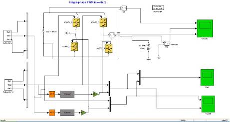 Let us consider the following example, inverter circuit to produce unipolar output pattern. It is connected with an RL Load as shown below. Simulations were carried out on a Intel Core 2 Duo 1.8GHz, 512 MB RAM processor. The rating of the proposed AC drive system was