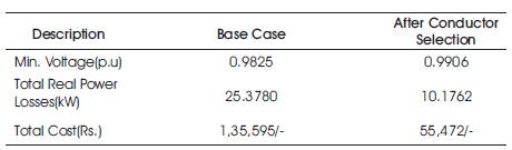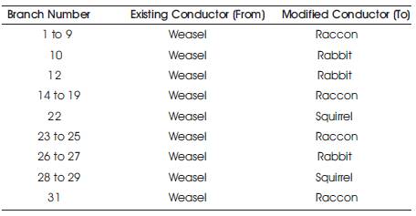 The system cannot be overloaded before conductor modification as the current in some of the feeder segments is violating the current constraint. Hence, the conductors selected based on genetic algorithm optimization technique are tabulated in Table 2.