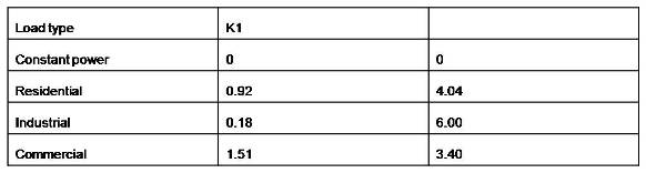 Where PLO , QLO are the active and reactive load powers respectively, at the nominal voltage of 1.0 p.u. and |Vm2 | is the actual voltage magnitude of node in p.u. In a constant power load model, conventionally used in power flow studies k1=k2=0. The values of the real and reactive exponents used in the present work for residential, industrial and commercial loads are given in Table 1[9]