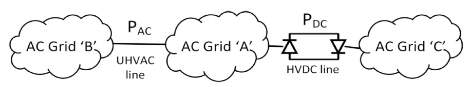 One of the major applications of HVDC link is to bridge two asynchronous AC grids. There are many ways to establish HVDC link to join two asynchronous AC networks (Kim et al., 2010; Padiyar, 1990). This kind of link creates additional protection as fluctuations from in one AC network usually do not transfer to another AC network through HVDC link. However, it is not always the case. Commutation failure (Thio et al., 1996) in CSC based HVDC network is a good example where fluctuations created in one AC grid could actually move through HVDC line and affect the other AC network. In the year 2012, China's power grid experienced a similar situation where commutation failure occurred in HVDC network multiple times (Cao et al., 2018). As per reports, this commutation failure led to a high amplitude power surge in UHVAC 1000kV line, connecting China to Central China power grid (Liu et al., 2015).