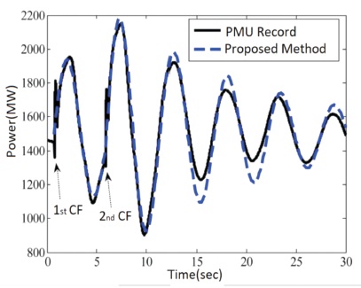 In the test setup, two CF introduced at CSC near Grid A and a phasor measurement unit is connected in Grid A for the observation of power surge. Prior to CF introduction, it has been assured that the modeled system works properly. From the reference point at PMU record, the simulation gets started 1 min before and at the time just before application of CF the system is under steady state condition.