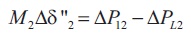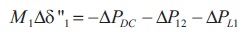 where M1 , M2 are inertia constant; δ1, δ2 are power angles; ∆Pdc is the power deviation from HVDC link; ∆P12 is power deviation in AC link; ∆PL1, ∆PL2 are load connected at machine 1 and 2.