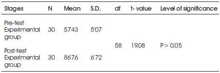 Table 2. Showing achievement mean scores between pre-test of Experimental group and post-test of Experimental group.