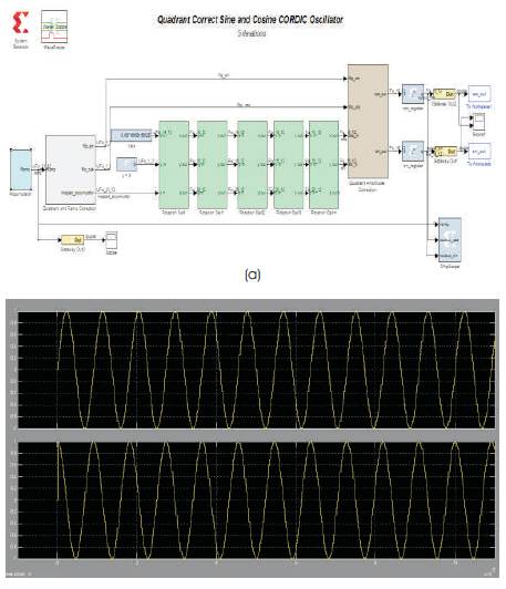 Figure 6. (a) Model of DDS using CORDIC algorithm (b) Output of the CORDIC based DDS model