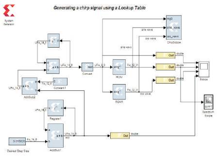 Simulink model is used to generate a VHDL code which is synthesized and implemented in FPGA. Using the Chipscope Pro block, the output generated on the FPGA can be viewed. The board used for implementation is SPARTAN 3AN-XCS3AN700 starter kit board. Chirp signal output implemented in FPGA is shown in Figure 12. μSAR specifications are mentioned in Table 3 (Duersch M. I., Dec-2004).