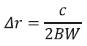 where BW is the bandwidth of the transmitted signal. Increasing the transmit bandwidth thus improves the resolution. This result is consistent with various derivations, and is a common rule-of-thumb in SAR signal processing.