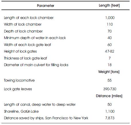 Construction started in 1904 creating one of the world's largest artificial lakes: Lake Gatún, as well as an 8 miles winding channel called the Gaillard Cut. Six massive locks were built to raise or lower the giant sea-going vessels to a height of 85 feet. More than 52 million gallons of fresh water are used for each ship which transits the Panama Canal. Technical Specifications are given in Table 1.