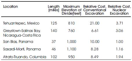 Table 2. Relative costs of conventional and nuclear excavation for different Trans-Isthmian routes for a sea level canal across the Central American Isthmus [8] .