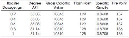 The physic chemical parameters like its Density, Gross Calorific Value, Specific gravity, Kinematic viscosity, Color, Volatility characteristics, Flash Point and Fire point were determined.