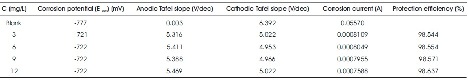 Tafel plot and impedance spectroscopy techniques were conducted at 60 0C with Pt (counter cell), calomel (standard), and Al (working) cell by using CHI workstation. The electrochemical experiment was performed in unstirred and aerated solution after stabilization period (approximately 50-60 minutes).