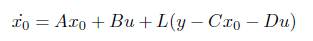 Kalman filter is an optimal observer, which minimizes a statistical meausre of the estimation error, e0 = x- x0 , where is the estimated state vector. The state equation of the kalman filter can be written as: