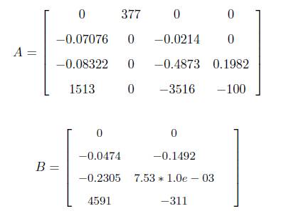 The experimental set-up to test the proposed algorithm consists of linearized Philips-Heffron model of SMIB described by matrices A and B below.