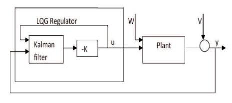 If a controller is designed using the LQR, and the observer is designed using Kalman filter, the resulting system is referred to as LQG Control or LQG compensator. In short the optimal compensator design is as follows (Yousef et al., 2008; Shaji and Ashwin, 2015):