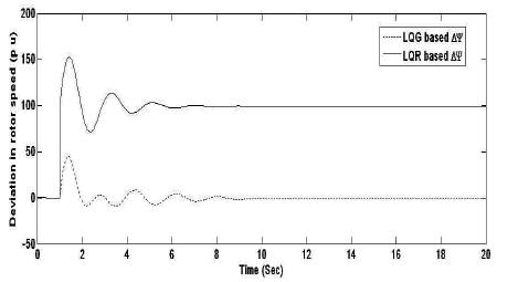 The experiments proposed with different LQRs (Scenario I) are conducted without any disturbances. If disturbance acts on the system, the LQG (LQR+kalman filter) control is proposed for the best LQR control selected from Scenario I to the control inputs of STATCOM ∆C and ∆ψ. To show this effectiveness of LQG control over LQR control under disturbance, the simulations are carried out by considering the process noise as W = 10*B'*B and measurement noise as V = 0.1*C*C'.