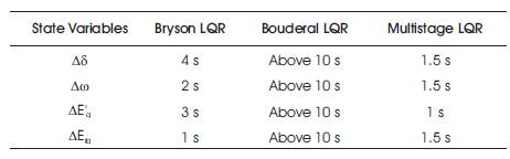 Table 2. Comparison of Ts for the STATCOM Control Input ∆C with Different LQR Approaches