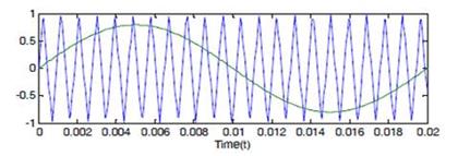 Carrier shifted Sinusoidal Pulse Width Modulation (SPWM) technique is one of the best SPWM technique because of better harmonic elimination in generating pulses to the multilevel inverter. The carriers are shifted by ø=360°s, and here s is the number of H-bridges. The basic generation of pulses by intersection of sine wave (voltage) with triangular carrier is shown in Figure 4.