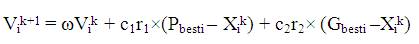In this velocity updating process, the values of parameters such as ω, c1 and c2 should be determined in advance. In general, the weight ω is set according to the following equation (5) [8].