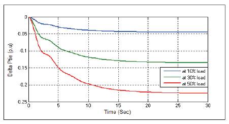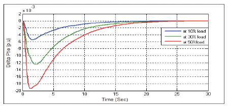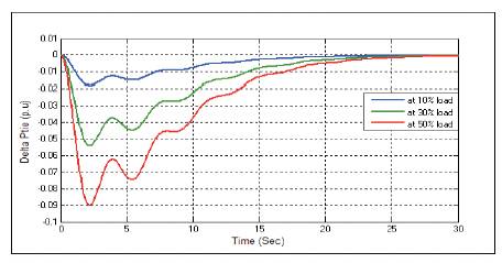 Figures 21-29 show the dynamic responses for AGC of two area system in the presence of PSO-PID controller with different load parameters. Dynamic responses for AGC of two area power system with PSO tuned PID controller having different load parameters offers minimum Peak magnitude and settling time.