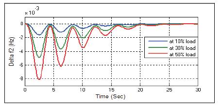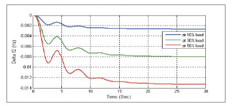 Figure 19. Change in Frequency Δf2 with Integral Controller at D=3