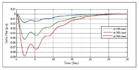In this case the dynamic response plots with PSO-PID controller is analysed when one of the load parameter i.e. damping coefficient (D) is a variable with variable load change ΔPL .The simulation plots at different values of D (i.e.,D=0.1,0.6 and 3) with variable load change ΔPL . (10%, 30% & 50%) with PSO-PID controller is studied. Simulation results of frequency and tie-line power responses are given below.