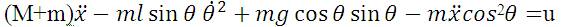 A force balance in the x-direction explains that the external force applied on the system is the summation of the mass times acceleration of the cart and the mass times the xdirected acceleration of the point mass. Force balance equation is written as: